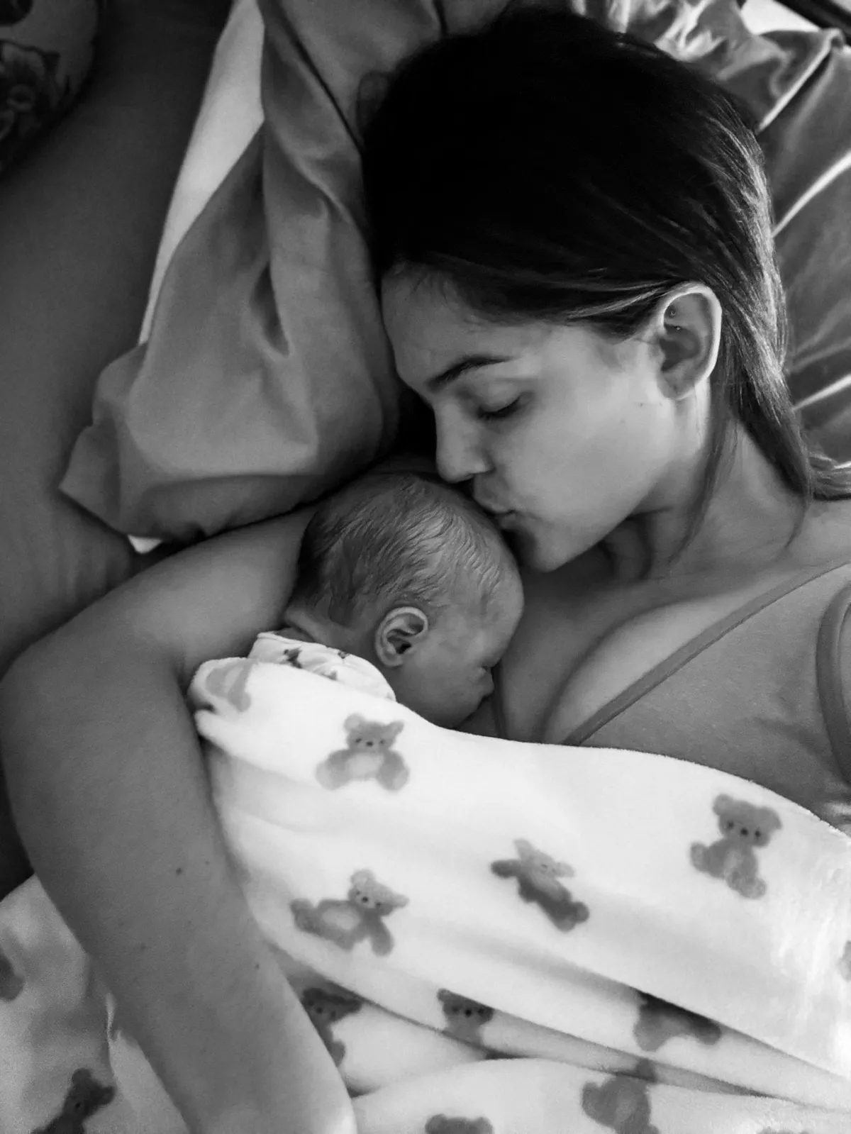 En peau à peau, mon bébé se met à téter.